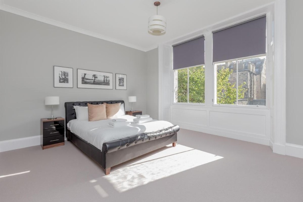 Overlooking Queen Street Gardens, this luxury apartment features stylish furniture, a spacious living room with a double sofa bed, a dining area, and a separate kitchen. It is a 2-bedroom property with a double bed in each room. Please note that these beds can unfortunately not be split into single beds. Please note that there is no elevator at this property and apartments on the ground floor can be requested and are subject to availability.